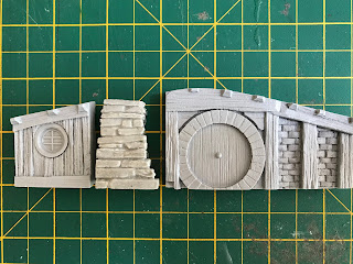 I had been asked to make two Hobbit Holes using the Forgeworld fronts. This was way back before the lockdown, so its taken a while for Forgeworld to get back to work and enable me to buy the components. The customer had seen some of my earlier builds and wanted me to make them look lived in and to split the front so they were not flat. So here are a few pictures of the builds....